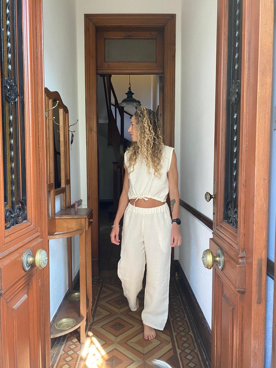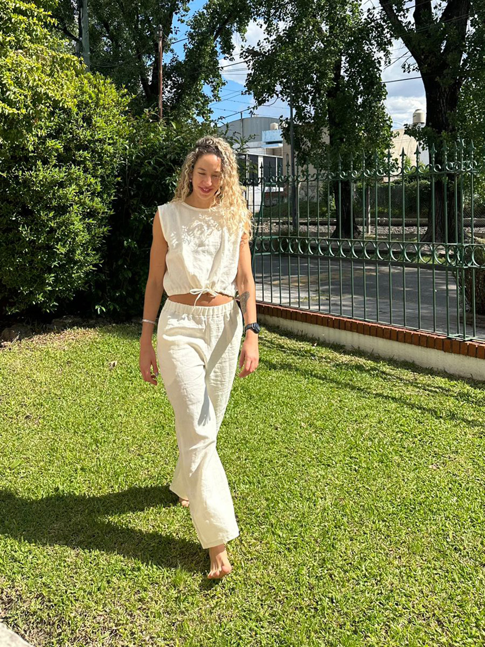 Pantalón de Lino con bolsillos y elástico en la cintura. Muy cómodos y versátiles.